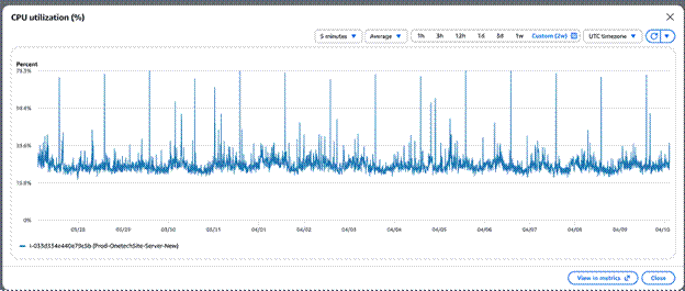 - OneTech Platform: CPU trung bình giảm 31,5% → 28,8% (↓8,6%); CPU đỉnh 79,2% → 71,4% (↓9,8%); CPU credit tăng 180 → 210.